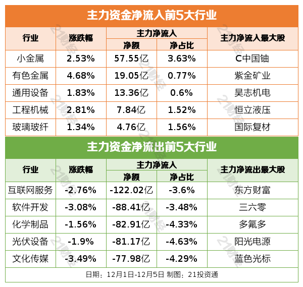 资金流向行业资金流向: